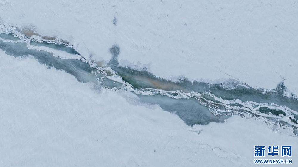 3月20日拍摄的青海湖冰面的裂缝。